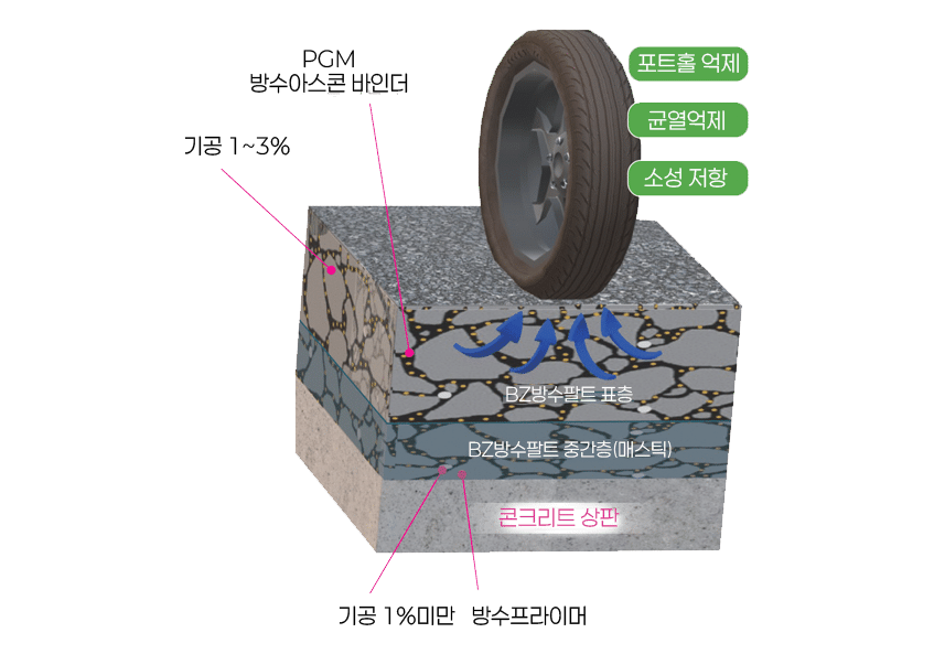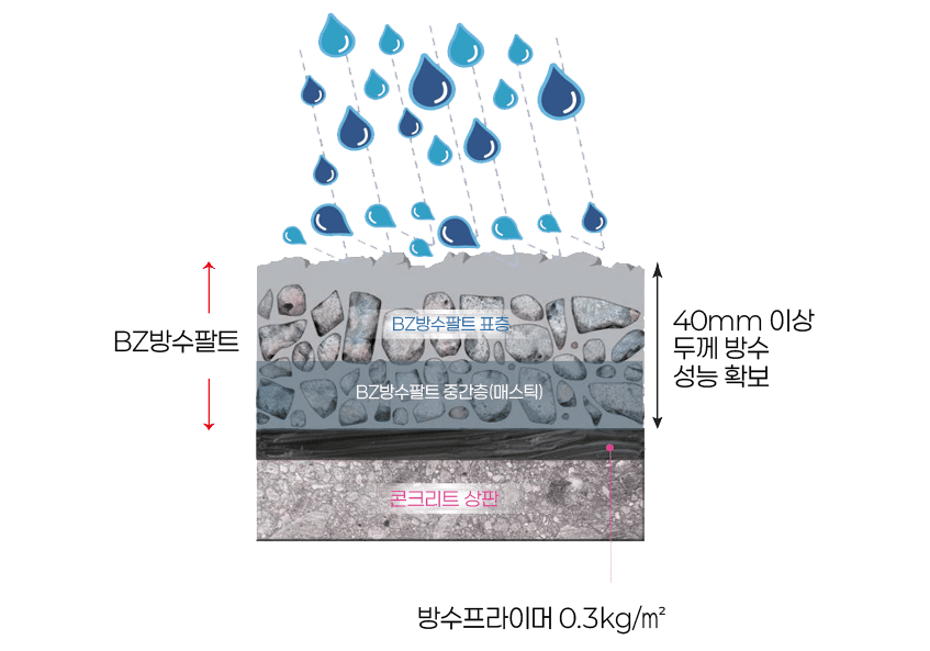 BZ 방수팔트 형성기존 포장 기술을 접목하여 시공되어